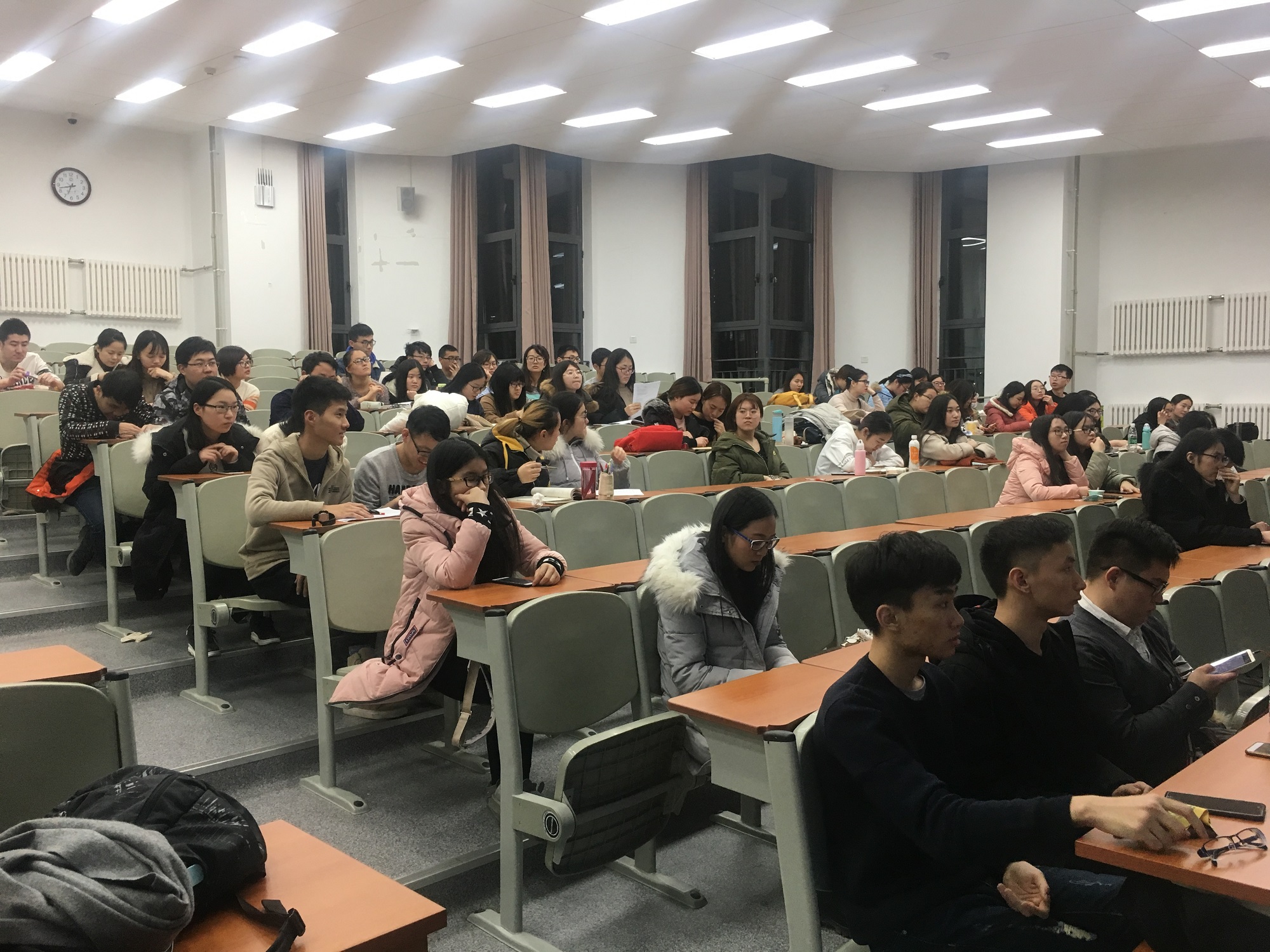 讲座由院长及辅导员讲话、优秀研究生介绍经验、同学提问三部分组成。严立宁院长在讲话中提到考研的重要意义,同时也告诫同学决定是否考研取决于自身,要多方面考虑。李昱颖老师则是从实际复习的角度鼓励大家尽快进入复习状态,避免摇摆不定、浪费时间,督促有考研意向的同学充分利用寒假的时间,有效率、有计划地复习。四位优秀研究生分享了自己的考研心路历程与不同阶段的复习规划,详细地介绍了报考不同专业、不同院校需要注意的问题,同时推荐了考研辅导书以及视频资料。同学们也表现出对于讲座活动的热情关注,纷纷针对自己关心的问题进行了提问。四位学长学姐对每一个问题都进行了耐心解答,并提出了中肯的建议。