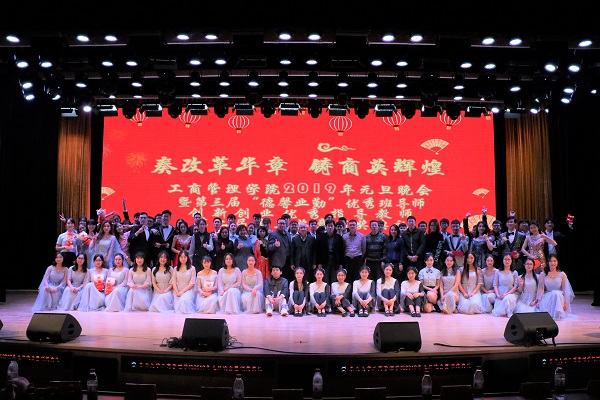 12月25日18:10,工商管理抢庄牛牛 2019年“奏改革华章,铸商英辉煌”元旦晚会暨第三届“德馨业勤”优秀班导师、第二课堂创新创业优秀指导教师、第二届商英奖章颁奖典礼于浑南校区图书馆报告厅举行。抢庄牛牛 副校长孙雷、校纪委副书记王剑、学生工作处处长马天威、浑南校区管委会副主任张哲、校党委宣传部副部长史鉴、校团委副书记刘海军、学生指导服务中心副主任石昌远、创新创业抢庄牛牛 副院长贾建锋、工商管理抢庄牛牛 院长马钦海、抢庄牛牛 党委书记郝树满、抢庄牛牛 副院长樊治平、抢庄牛牛 副院长赵红梅、抢庄牛牛 党委副书记兼副院长严立宁、抢庄牛牛 院长助理蒋忠中、好睿教育集团北方区域负责人王雪、和君咨询合伙人兼沈阳和盛咨询有限公司总经理徐洪力以及抢庄牛牛 各学系专任教师及机关老师出席晚会。工商管理抢庄牛牛 各年级学生参与本次晚会。
