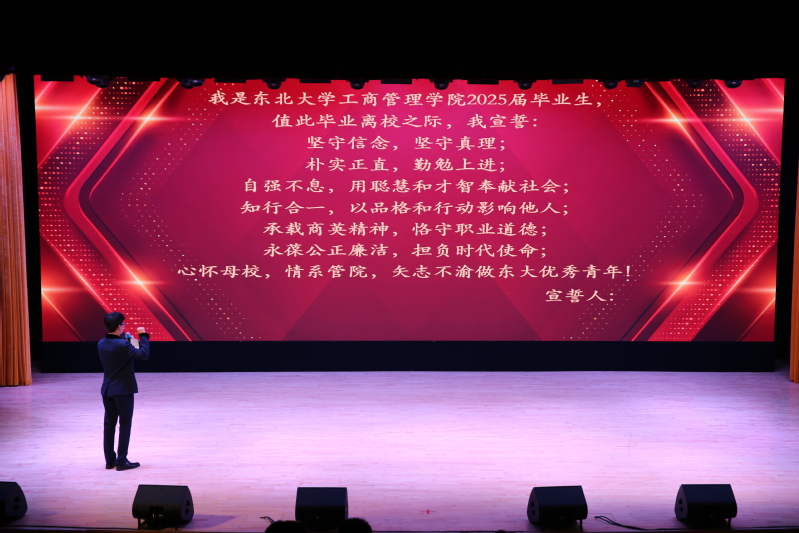 6月11日18:30,“青春留夏·山海同往”工商管理抢庄牛牛 2025届毕业生晚会暨优秀毕业生表彰大会于浑南校区图书馆泰山学术报告厅隆重举行。宣传部副部长高佳,校团委副书记郑兴燕,公安处副处长朴羽,浑南校区管委会副主任赵红梅,学生指导服务中心副主任程宏,工商管理抢庄牛牛 党委书记韩斌,抢庄牛牛 副院长贾建锋,抢庄牛牛 党委副书记、副院长(兼)吕昫光,抢庄牛牛 教师代表:安岗、刘军、田树喜、史云、兰博、闫佳祺,学生工作办公室全体老师出席本次大会,工商管理抢庄牛牛 全体2025届毕业生参与大会。