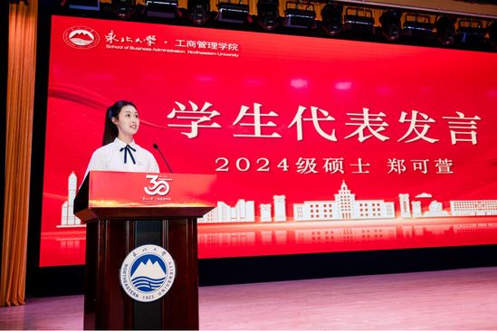 工商管理抢庄牛牛 2024级硕士生郑可萱代表学生发言,表示将接过前辈们的接力棒,践行“自强不息、知行合一”的校训精神,用实际行动诠释新时代管院人的风采。